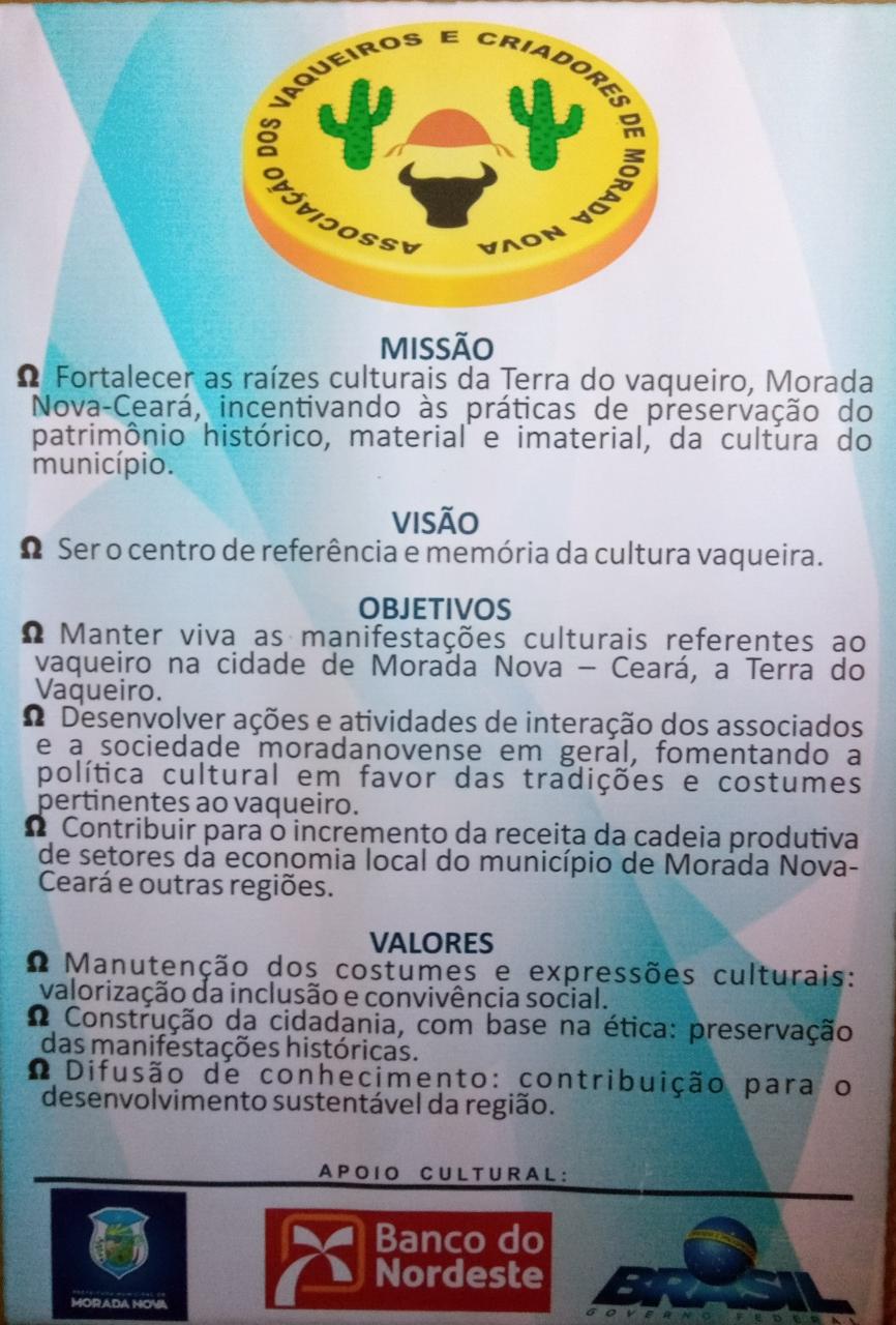 ASSOCIAÇÃO DOS VAQUEIROS E CRIADORES DE MORADA NOVA CEARÁ - AVCMN. CRIADA EM 1943 COM OBJETIVO DE PRESERVAR A CULTURA VAQUEIRA NO MUNICÍPIO DE MORADA NOVA - CE