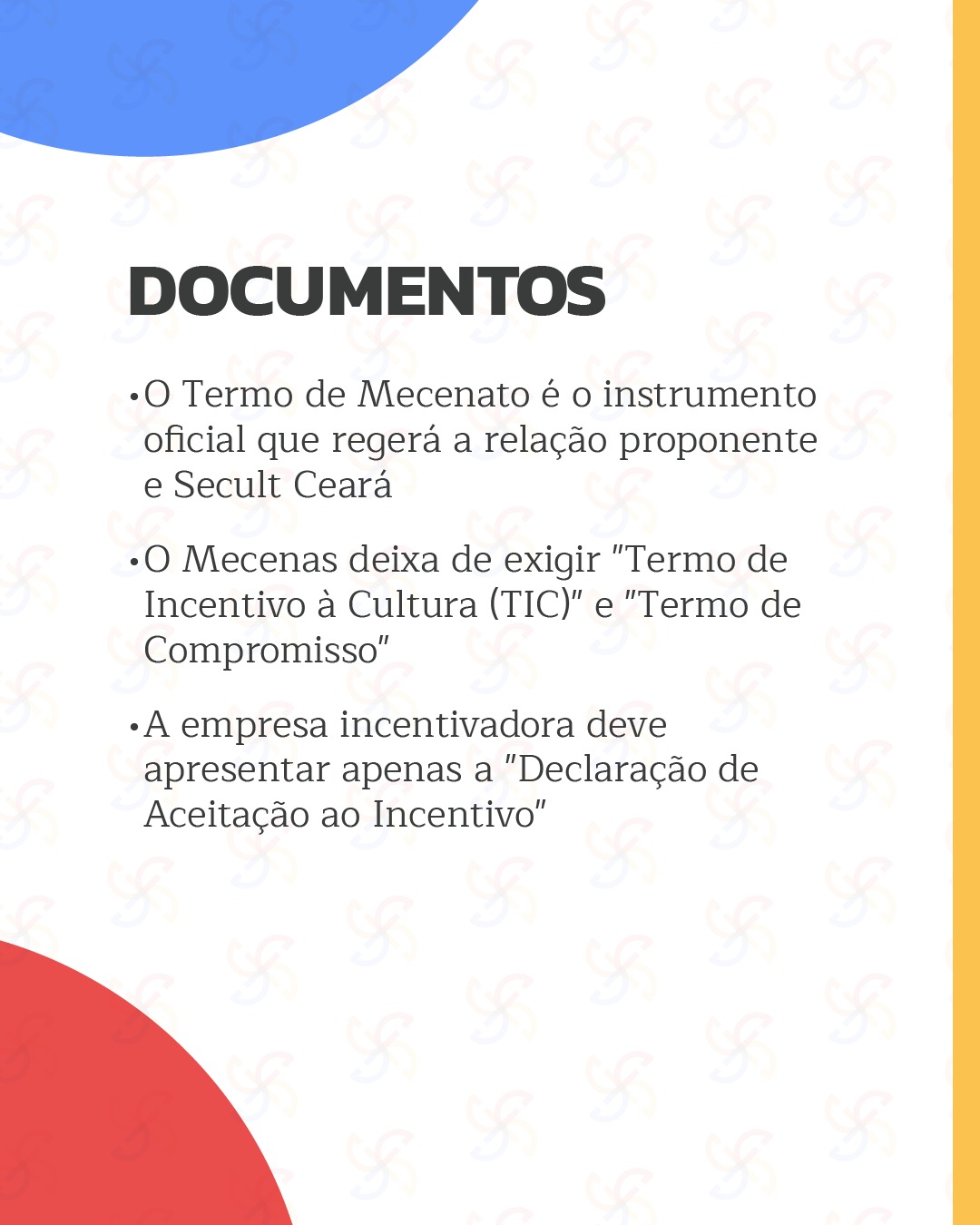 A Secretaria da Cultura do Estado do Ceará, no uso de suas atribuições legais, torna público o EDITAL MECENAS DO CEARÁ 2024, que regulamenta o processo de inscrição e seleção pública de projetos de várias áreas culturais passíveis de incentivo via renúncia fiscal, nos termos da Lei nº 18.012/2022.